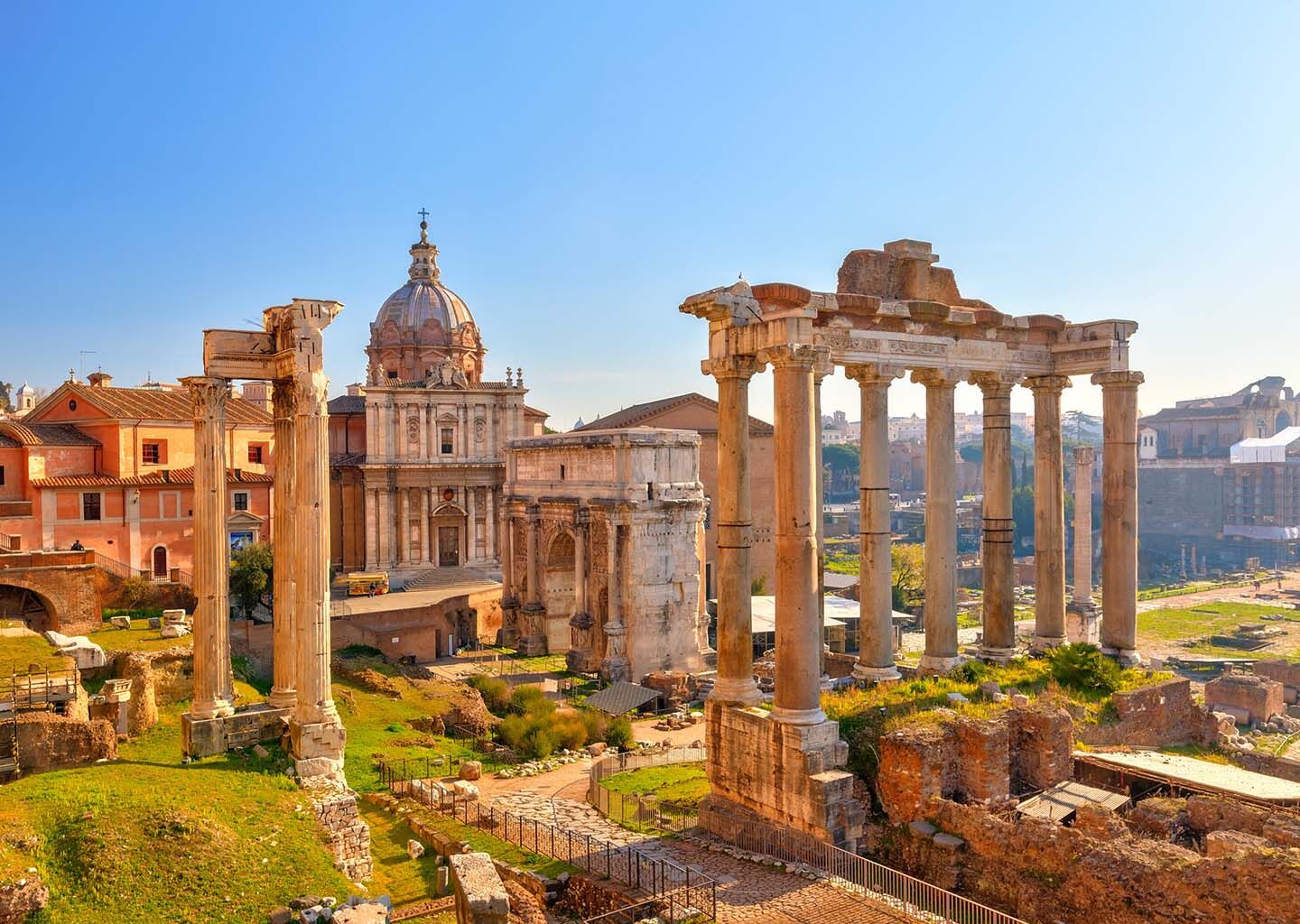 We depart on an international overnight flight to Rome. Dinner and breakfast are served on board.