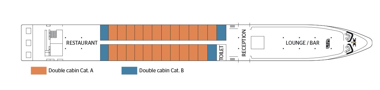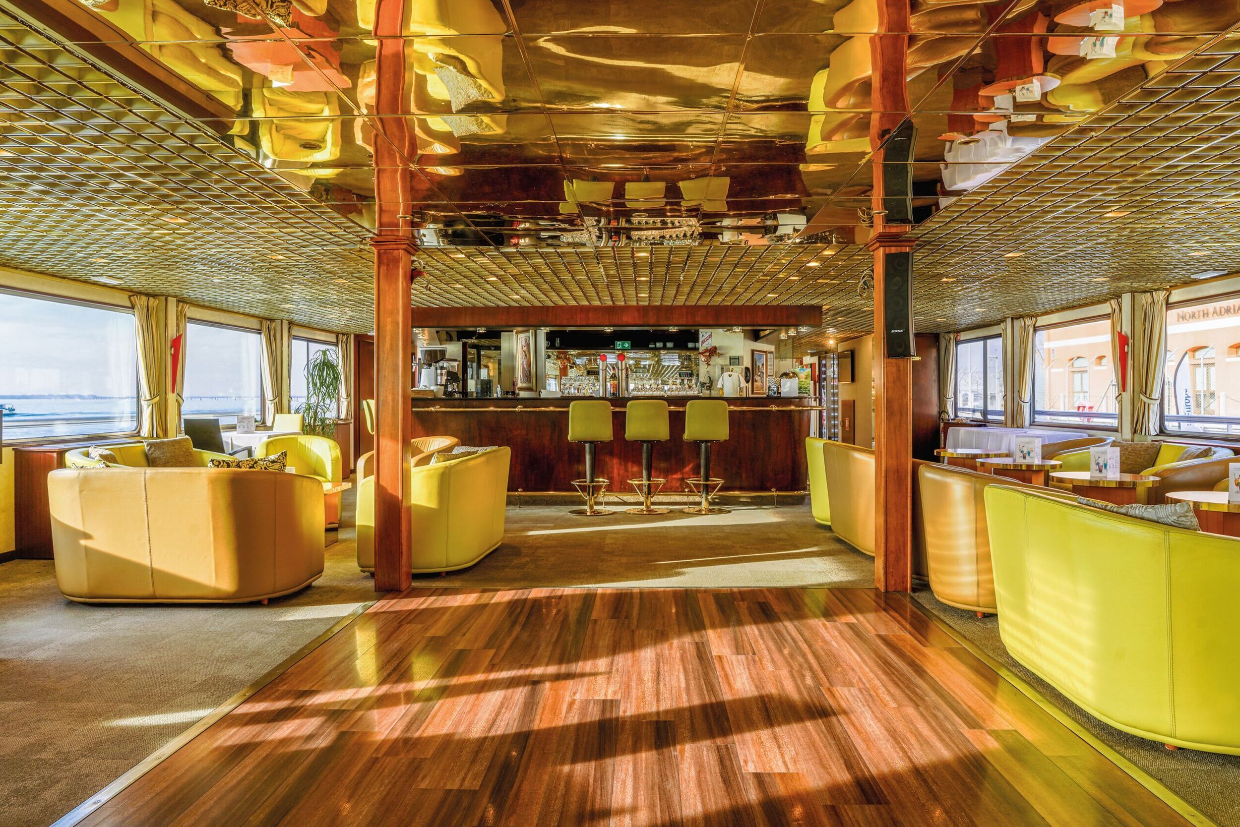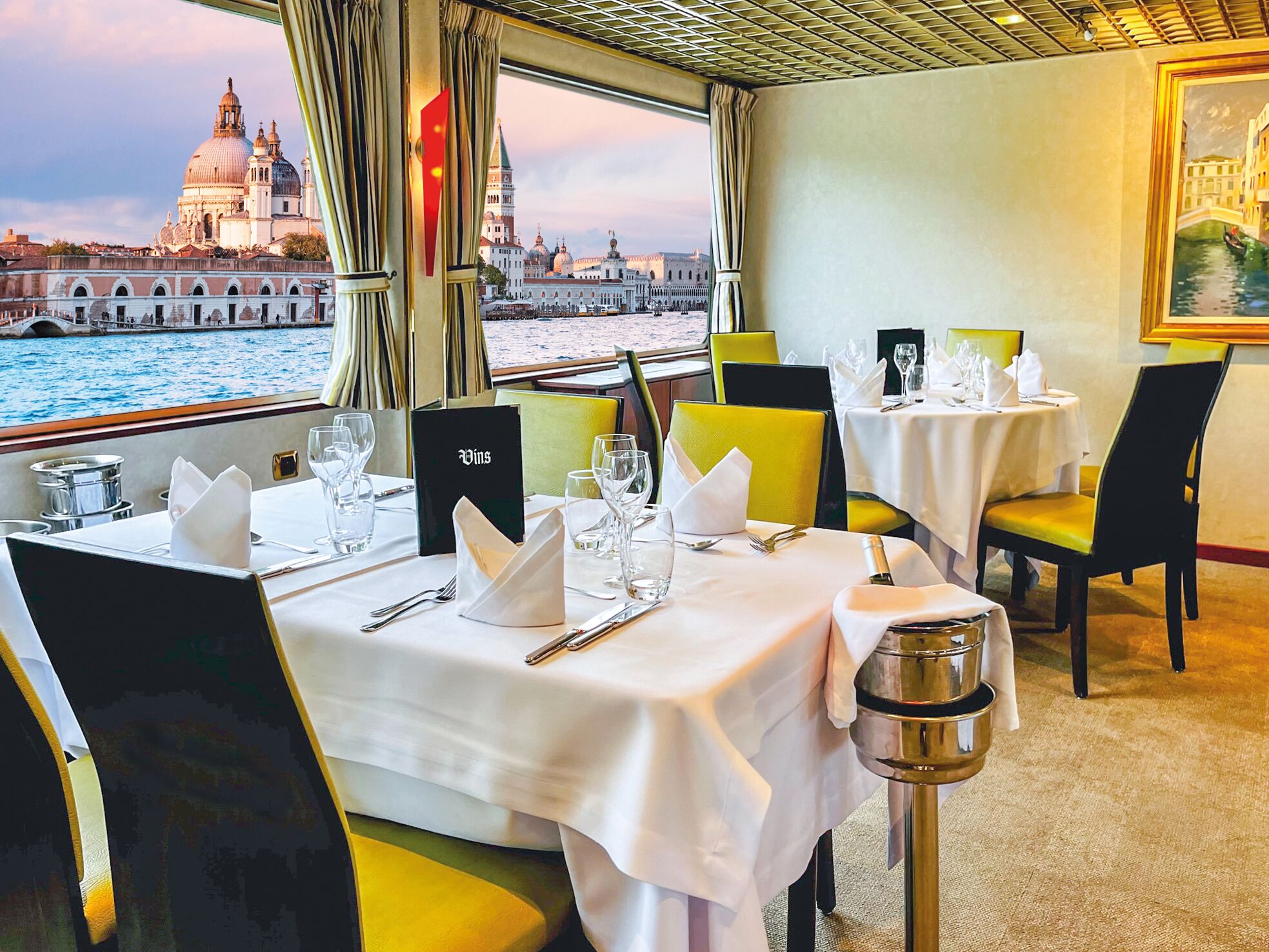 The restaurant is located at the back of the main deck and the lounge / bar at the front. The sun deck with sun loungers is the perfect place to relax and admire the panoramic view of Venice.